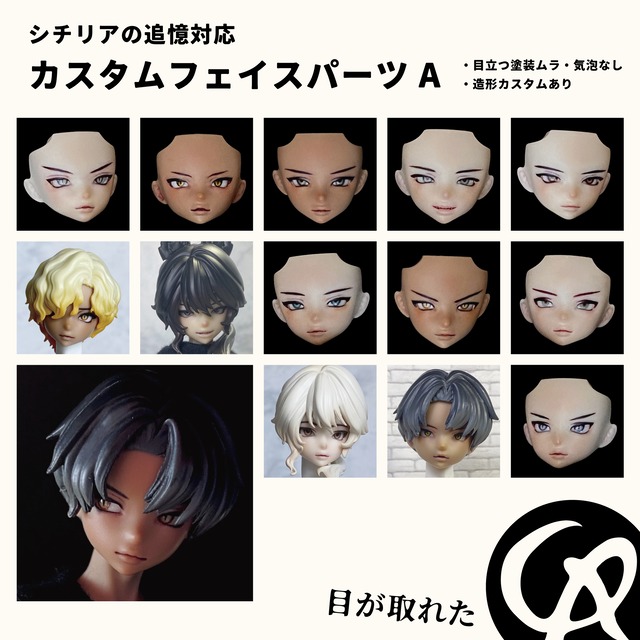 シチリアの追憶対応カスタムフェイスパーツAタイプのページです。 Aタイプは ・目立つ塗装ムラや気泡がないもの ・造形のカスタムをしているもの となります。 現在プレビュー中です。 ※撮影に使用したアイは着用見本につき付属しません。 ※台座等小物類・髪パーツは付属しません。 ※撮影にRoseden様のエデンアイを使用しているものはアイの名前を画像内に記載しました。 ★唇造形ありフェイスパーツ(3Dプリンタ製) KULLMA様(X:@jinko69)よりデータ提供と許可を得たシチリアの追憶対応フェイスパーツ ★メイク お顔はリキテックスとパステルでメイクし、最後にUVカットつや消しスプレーでコーティングしています。 簡単に塗装が落ちることはないと思いますが、強い摩擦や硬いもの・尖ったものにぶつけると塗装が落ちますのでご注意ください。 ヘアパーツと干渉する部分の塗装剥げは避けられないため、何卒ご理解ください。 できる限り丁寧に作業しておりますが、手作業でのカスタムにつき筆ムラや微細なチリの混入、磨ききれなかった積層跡など至らない部分もございます。 ★造形カスタム 造形カスタムありのフェイスパーツは、アイホール周りと眉周辺をレジン盛り、ヤスリがけでカスタムしています。 レジンはフェイスパーツ出力時に使用したものと同色のレジンを譲り受け使用しています。 レジン盛りをしている部分は、強い衝撃で取れてしまうことがございます。 また、アイを取り付ける際に内側から強く押すのもレジンが剥がれる原因となるため、やさしくお取り扱いください。 ________________________________________________________ ◯対応サイズ ・シチリアの追憶 ◯当ショップの商品に関する共通のご注意(お洋服についてのご注意です。メイクカスタムアイテムについては個々の注意書きをご参照ください) ・素人によるハンドメイド作品です。丁寧な制作を心掛けておりますが、小さな服なので縫製の歪みや個体差が顕著に出ます。既製品クオリティをお求めの方や神経質な方はご遠慮ください。 ・お洋服のみの販売です。写真に写っているドール本体や靴、撮影小物等は商品には含まれません。 ・できるだけ実際のお色に合わせて調整しておりますが、ご覧になっている端末のモニタにより実際のお色とは多少色味が異なる場合がございます。 ・表には出ない部分に布用ボンドとほつれ止め液を使用しています。 ・後ろに開きがないトップスは、ヘッドパーツを取り外して着脱させてください。また、袖口やパンツの裾を絞ってあるものは、着用しづらい場合は無理に手足をねじ込まず、ハンドパーツ、足パーツを取り外すなどして着脱願います。手芸用鉗子やピンセットを使用していただくと着せやすいです。 ・腰ゴムのないタイプのパンツは制作時に必ず着用テストをおこなっています。個体によってはきつめの作りで骨盤にひっかかるものがありますが、指やピンセット、手芸用鉗子などでひっかかりを解消しつつじわじわと押し上げれば必ず入ります。 ・お洗濯は型崩れの原因となりますのでご遠慮ください。 ・アイロンは基本的に非推奨。やむなく使用される場合は低温から試し、熱い部分がプリント部分に直接あたらないようご注意ください(プリントが熱で溶けます)。また、到着時にプリントの剥がれがあった場合には1週間以内ご連絡ください。 ◯ご注文後のトラブルには一切責任を負いかねます。 ◯お客様都合での返金・返品・交換は受け付けておりません。 ◯転売行為は絶対禁止。