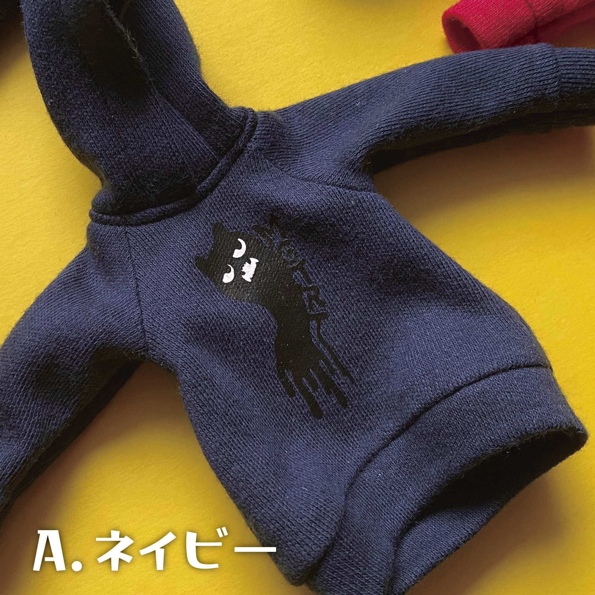フーディーは洋梨型というか、裾がポテっとした形になっています。