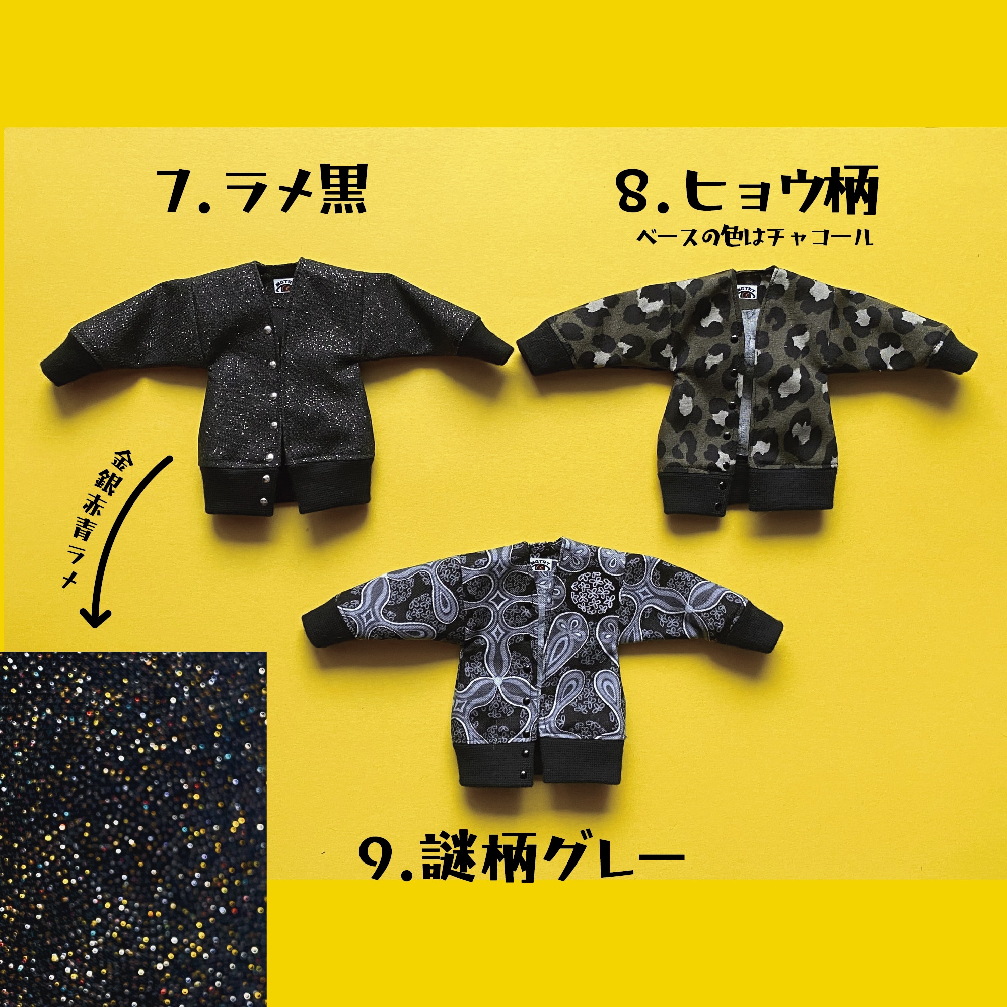 7のラメ布は細かい4色ラメ(金銀赤青)がきらきらする布です。ラメと言ってもポロポロと剥がれてくるタイプのラメではないので普通の布と同じ感覚で扱えると思います。薄いけどすこし硬め、でも着せづらくはない。