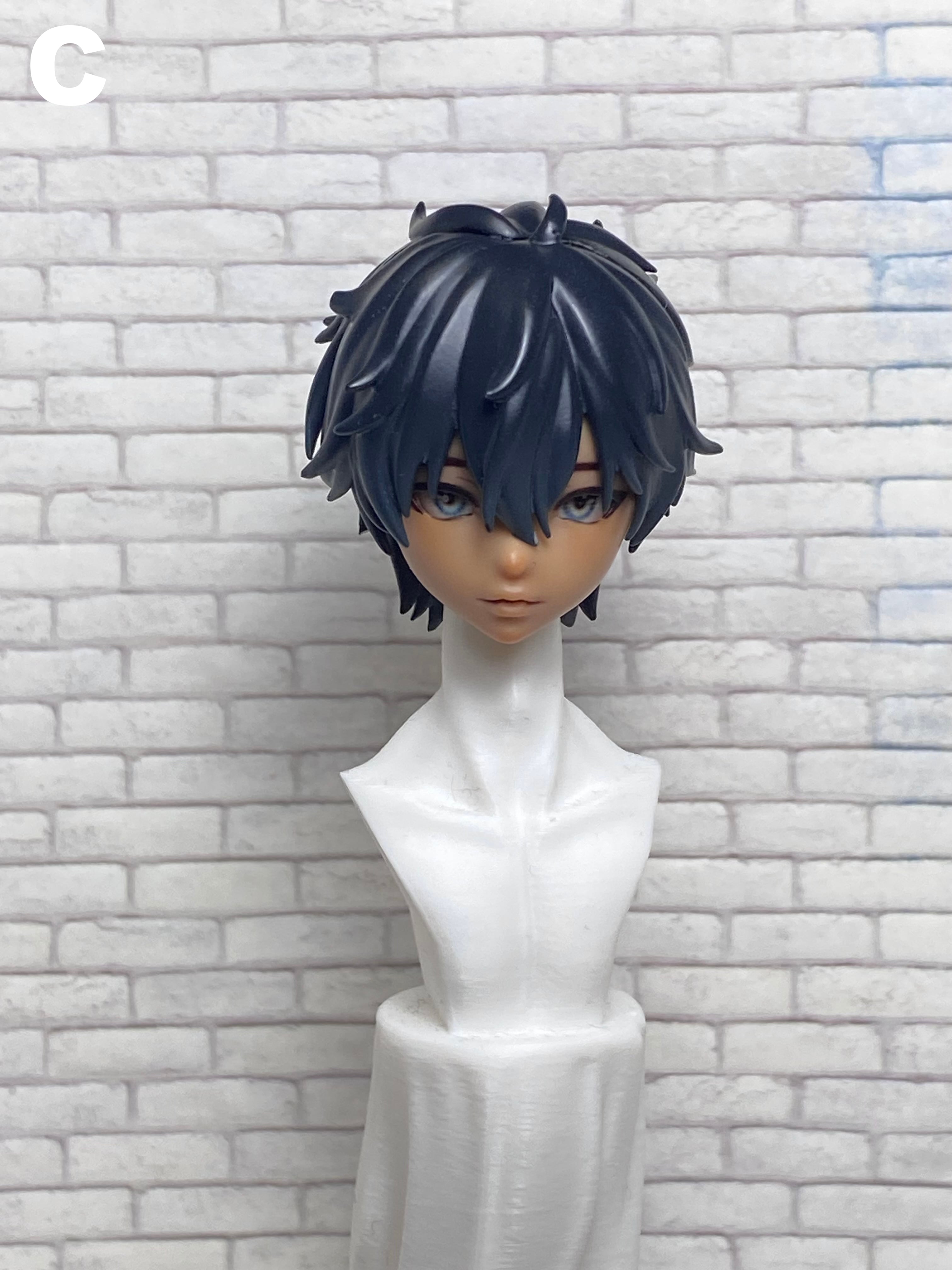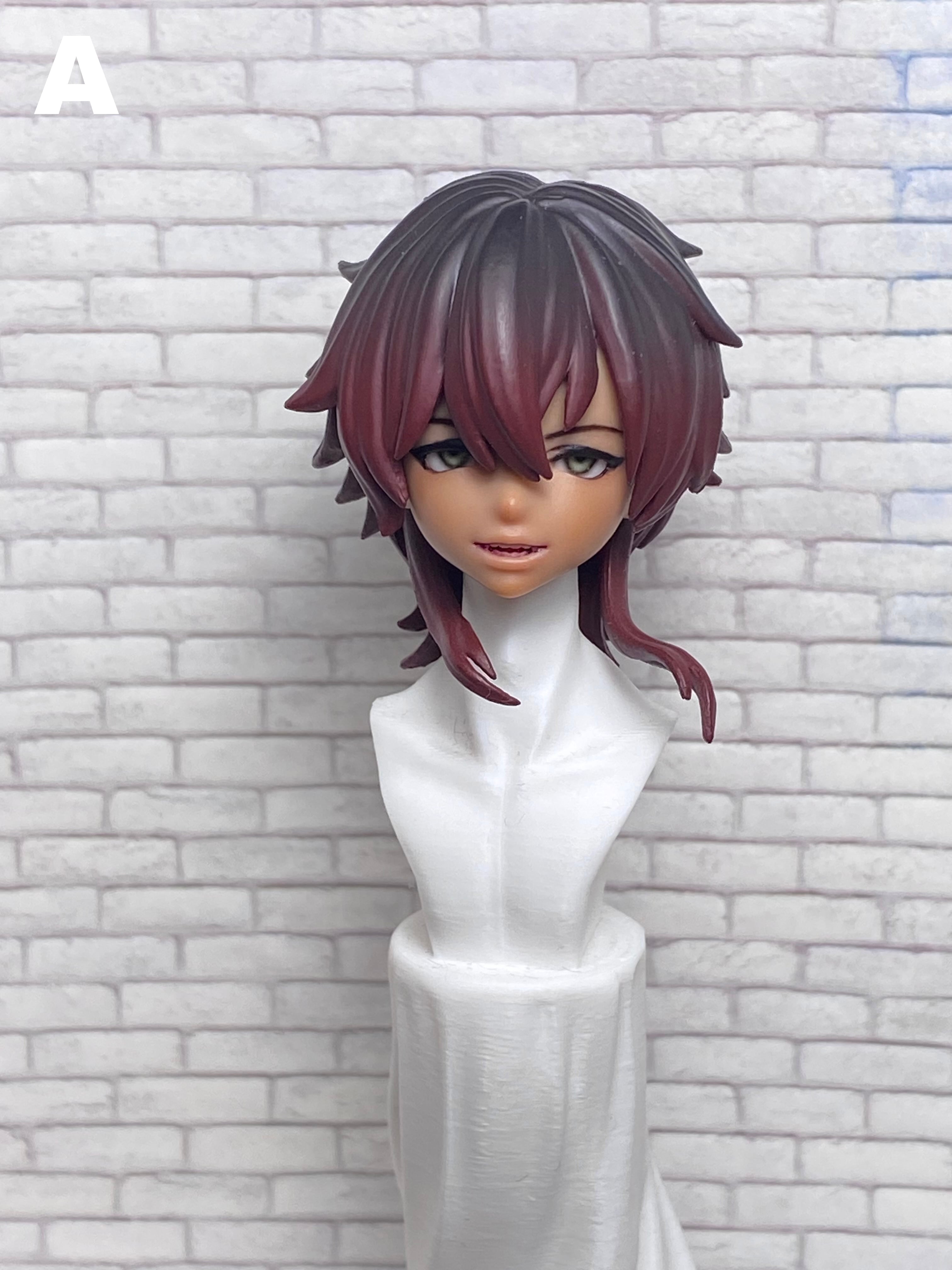 今回の3つのお顔は、シチリアの追憶褐色(浅烧)ボディに合わせたレジンの色確認のためにテストプリントしていただいた個体を使用しています。