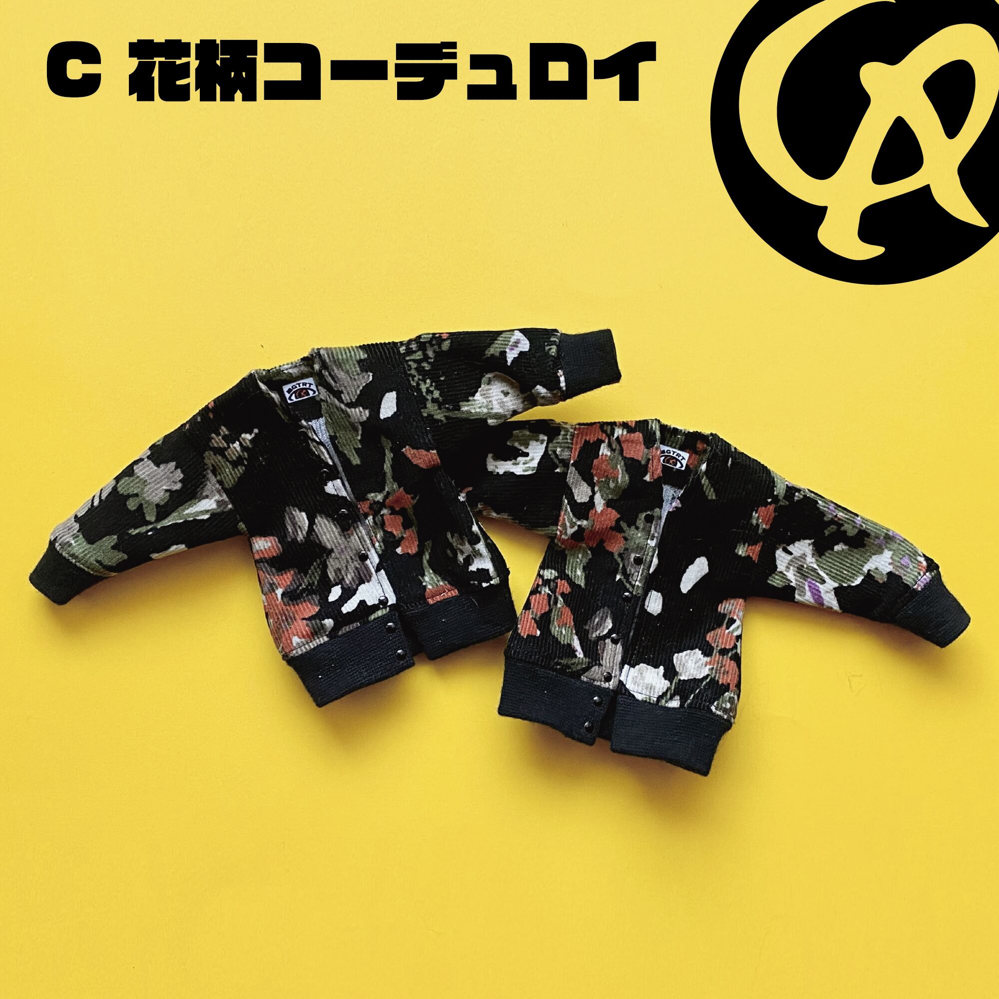 C:黒地に花柄(花柄…?だよね?)の薄手コーデュロイです。